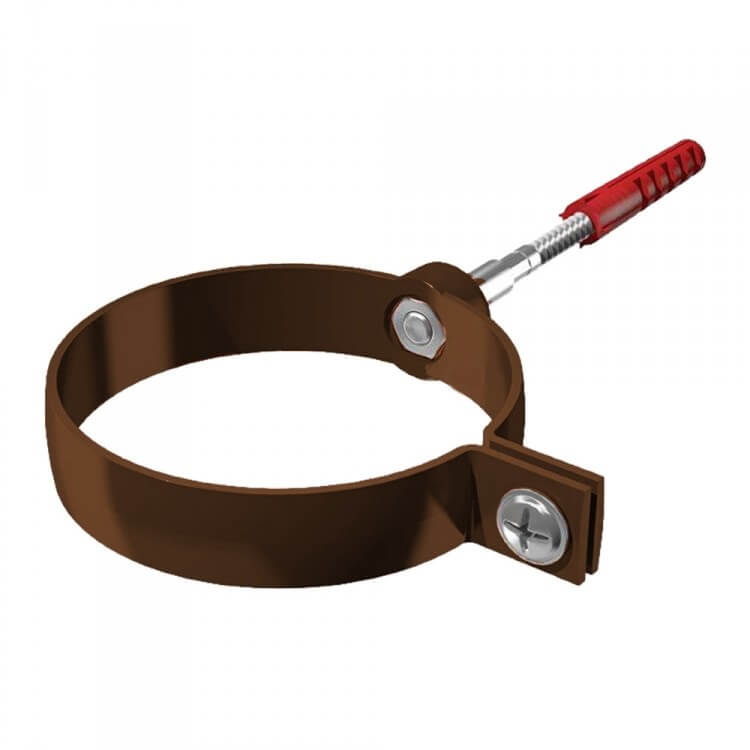 Хомут трубы металлический для Пластик ТЕХНОНИКОЛЬ 125/82, с дюбелем L=140 мм, коричневый